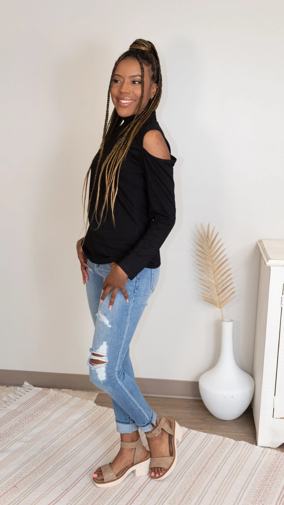 The Be Unique Top is so flattering!! This cold shoulder top is perfect for this Fall! Pair this with your favorite jeans and booties for a comfy going out outfit!