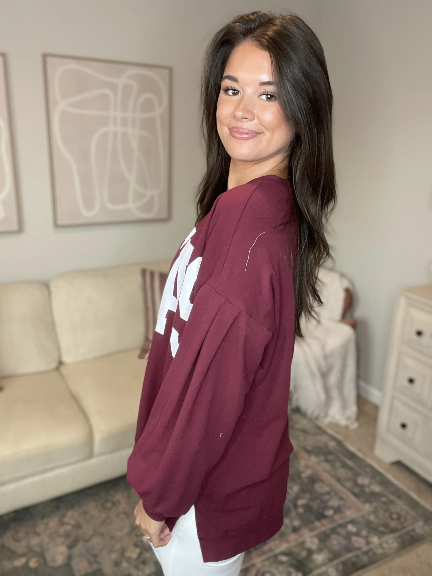 Cotton Jersey Loose Fit Long Sleeve Top W/ Texas | S – L Gameday