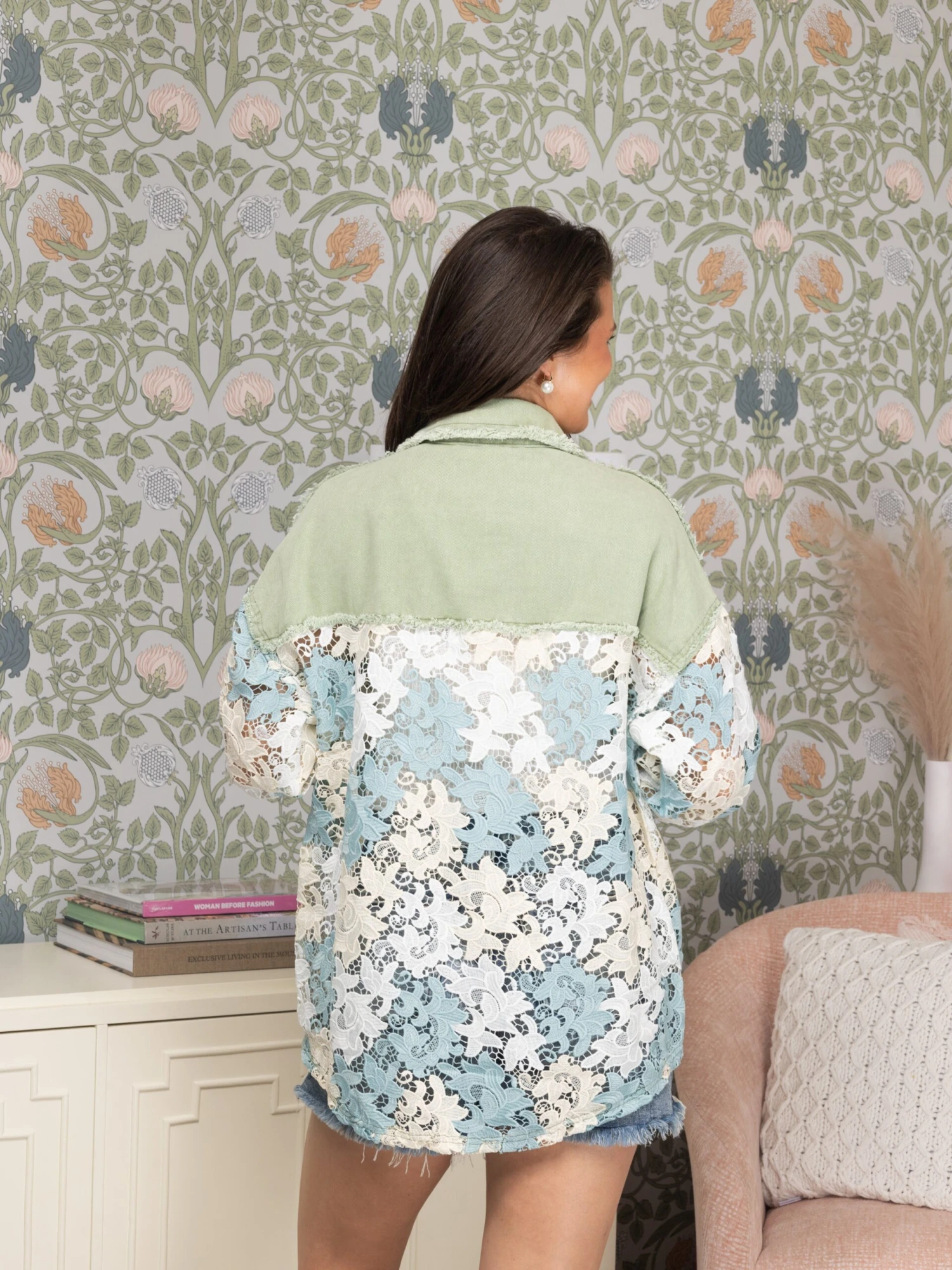 Flower Ragged Lace Raw Hem Denim Jacket | S-XL Blue Velvet