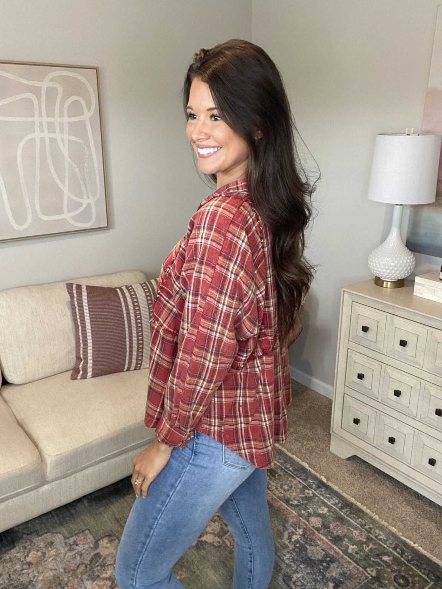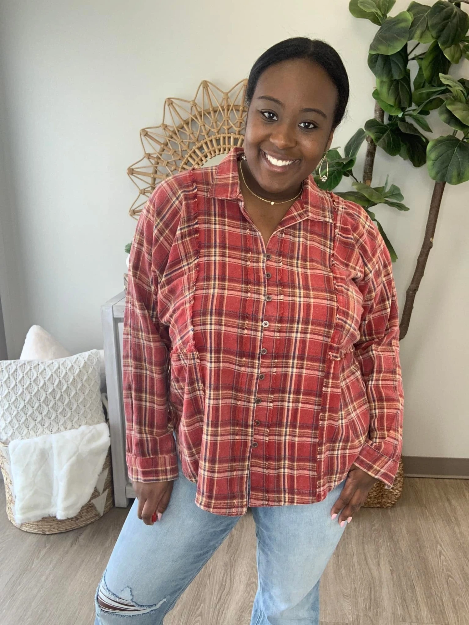 The “Just How You Want Top” has arrived! This super cute mineral washed long sleeved top is just what you need! We are loving this plaid look ladies! Be sure to snag one before they sell out!