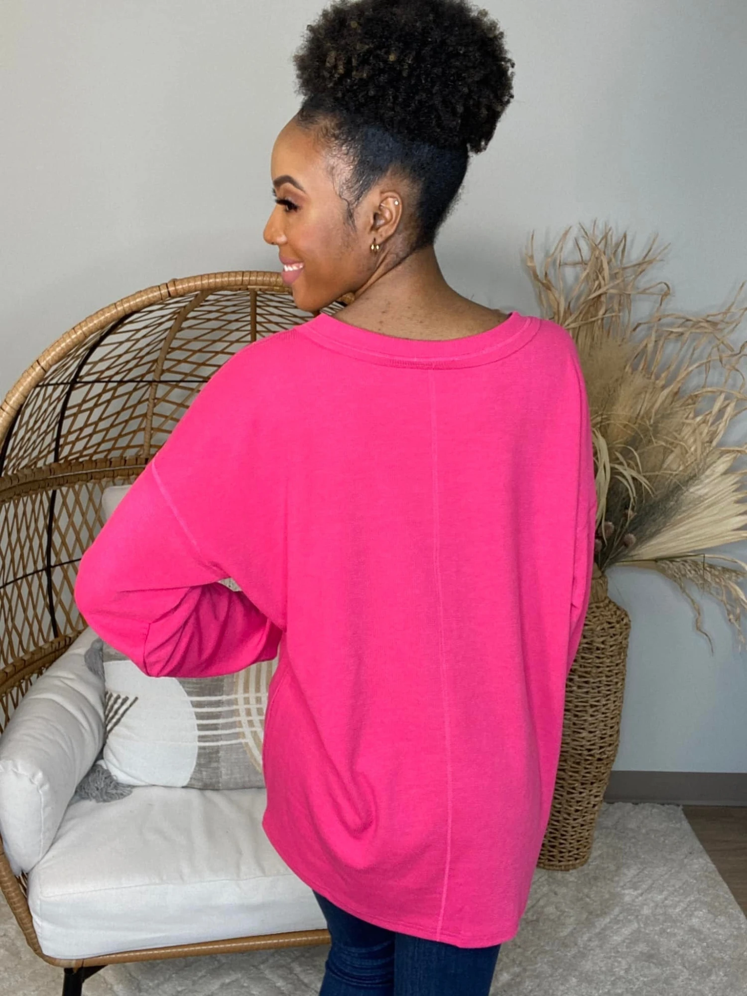 The “Love You Babe Pullover” has arrived! This long sleeve is a must have! So simple yet so stylish, this one is perfect for everyday wear! With small stitching details, there is just the right amount of subtly!