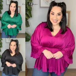 The “Powerful Position Top” has arrived! This cinched waist moment is a must have! So flattering, with ruffle sleeves, you need this one in your life! Pair with some pants for the office or denim for a date night!