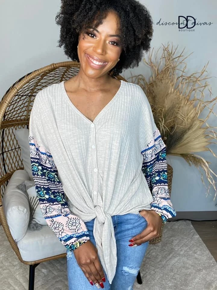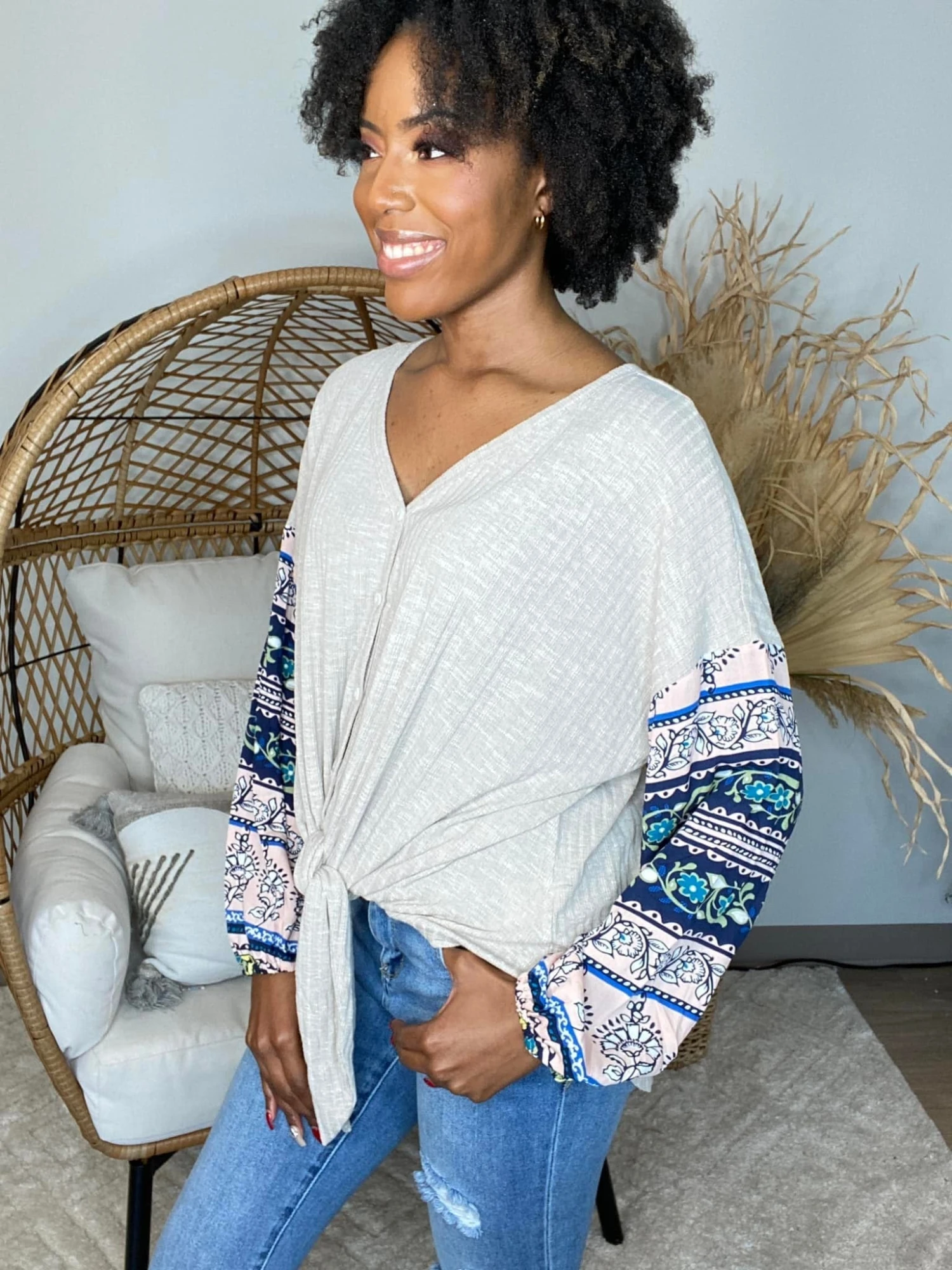 The “Save Time Top” has arrived! We are living for this summary down with the front tie moment! The floral print sleeves are such a gorgeous detail added to this top! Be sure to snag one before they sell out!