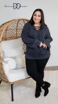 The Shared With You Hoodie is here! The possibilities with this pullover are endless! The lace up detail in the front will have you looking stylish and feeling comfy for the cold weather! Snag one today!