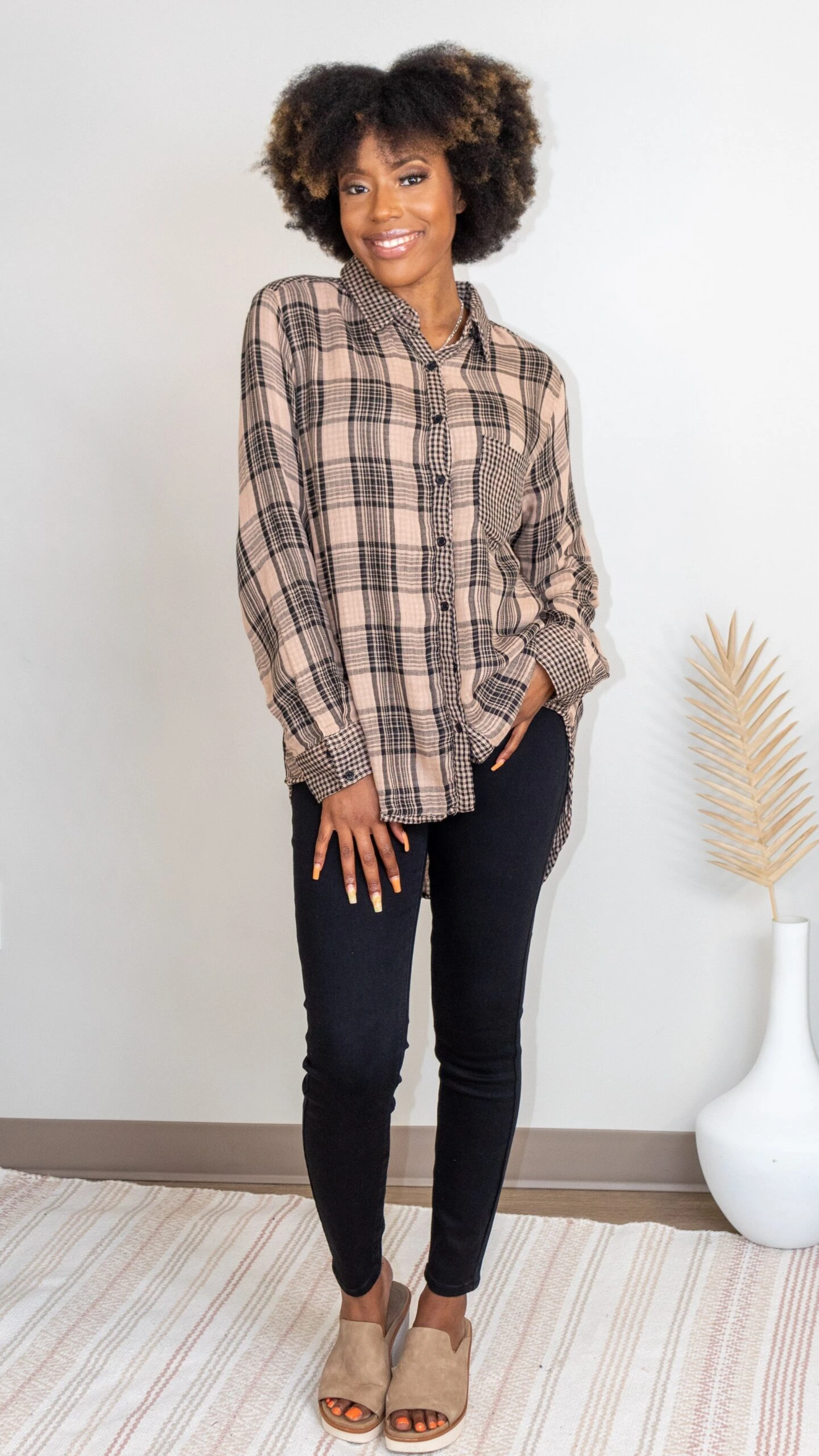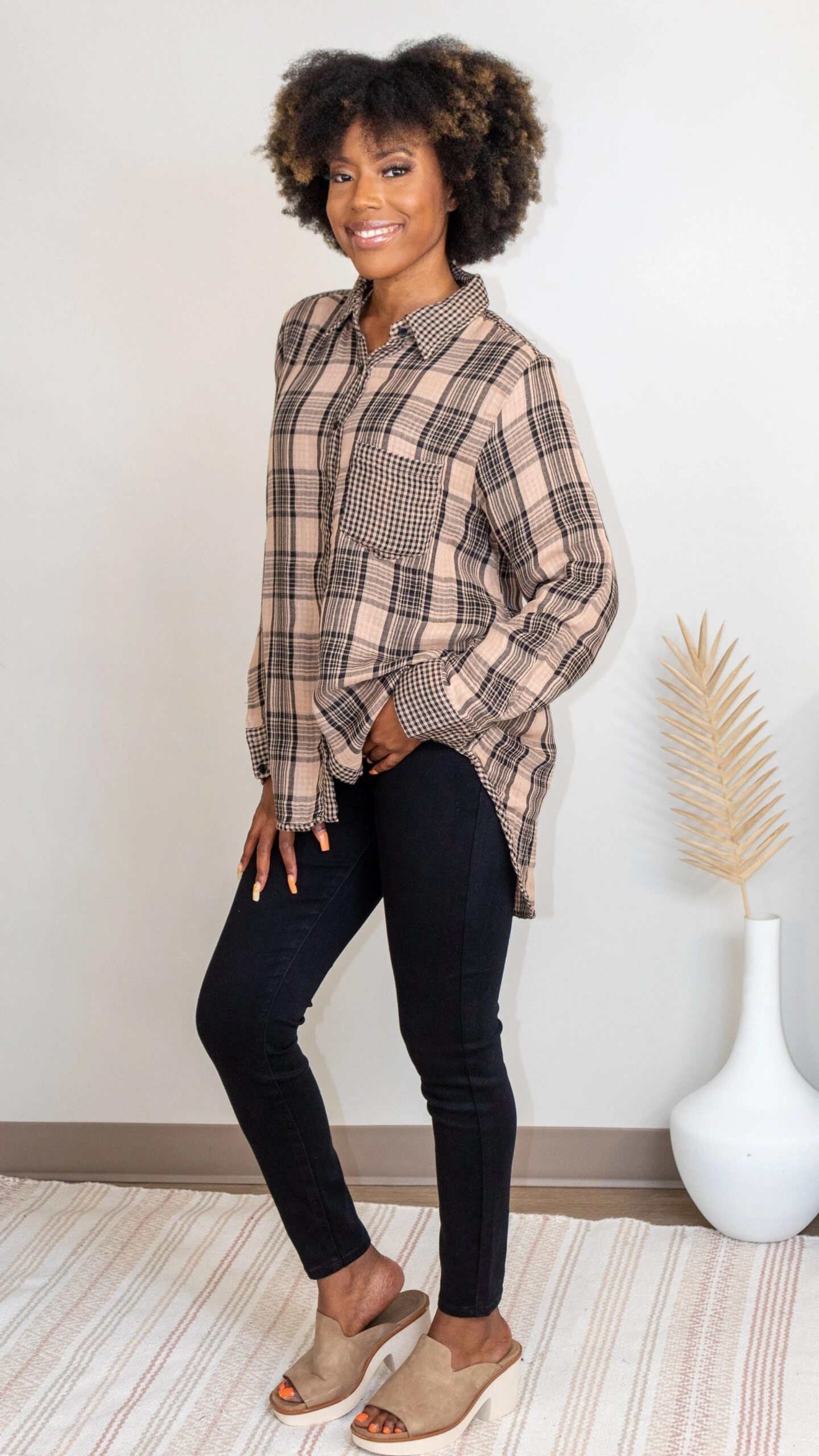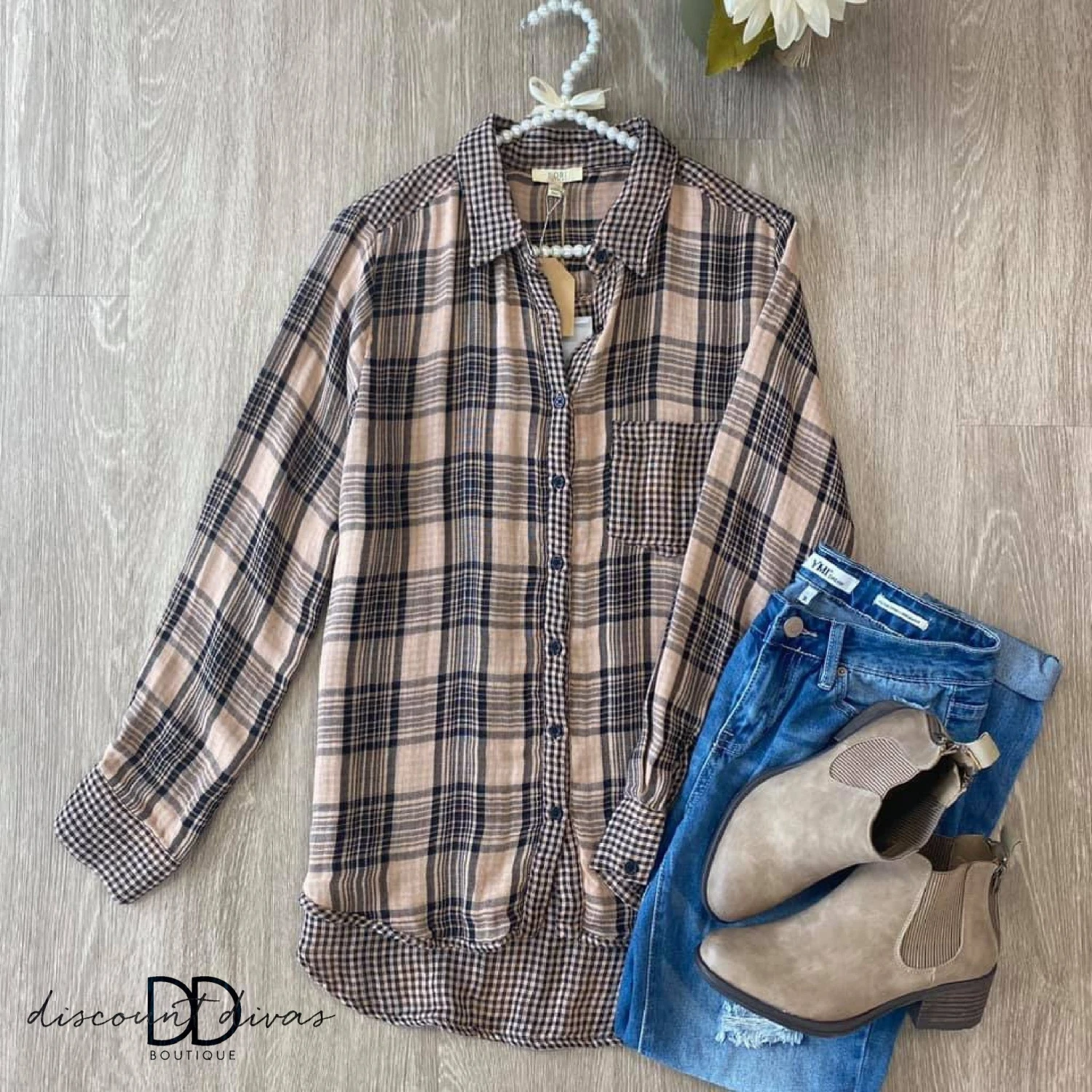 The Take Your Word Shirt is the perfect lightweight layering piece or wear it summaryed up! This top gives us ALL the fall vibes! Pair it with black denim to finish off the look!