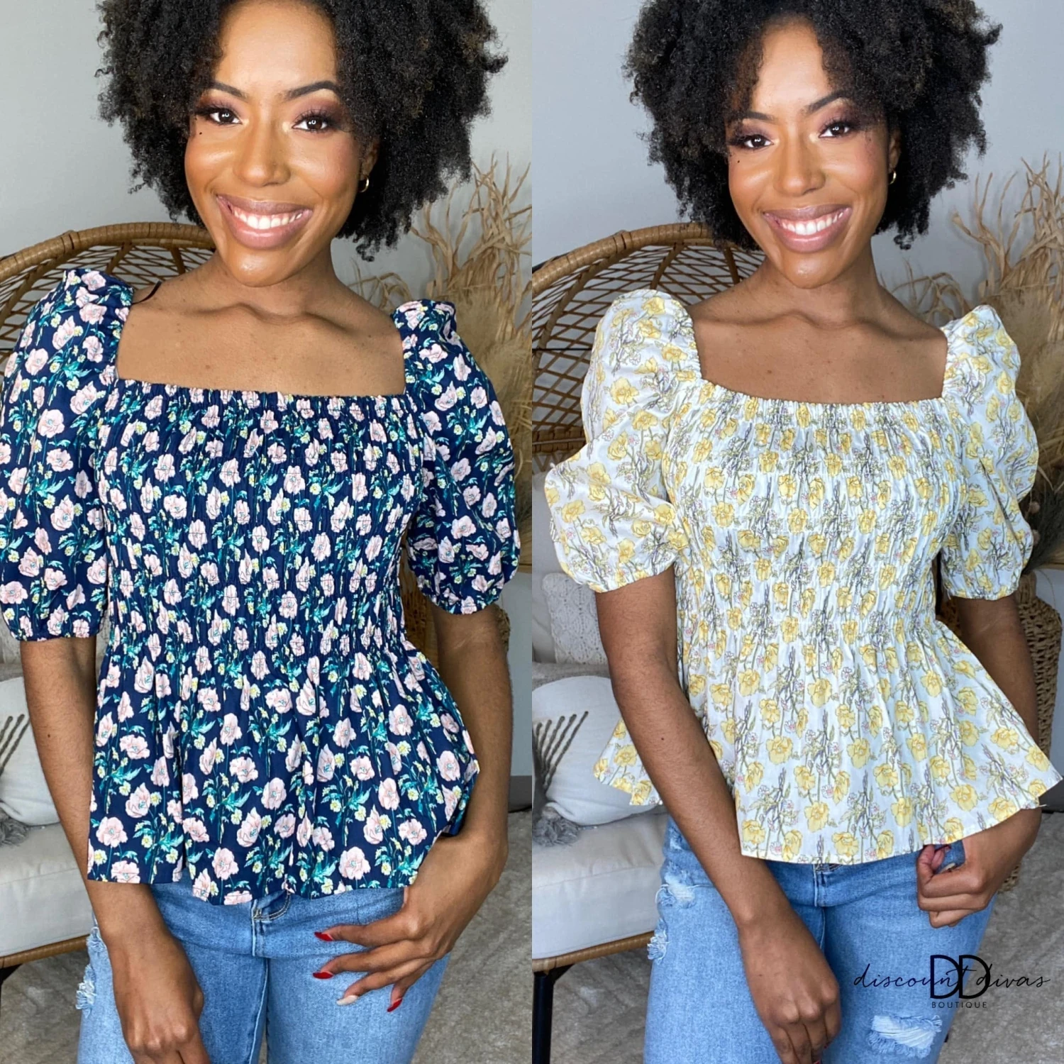The “Thanking Them Top” has arrived! This super cute floral print top with the babydoll fit and smocked bodice is stunning! You need this number in your life so be sure to snag one while you can!